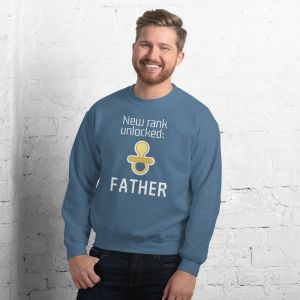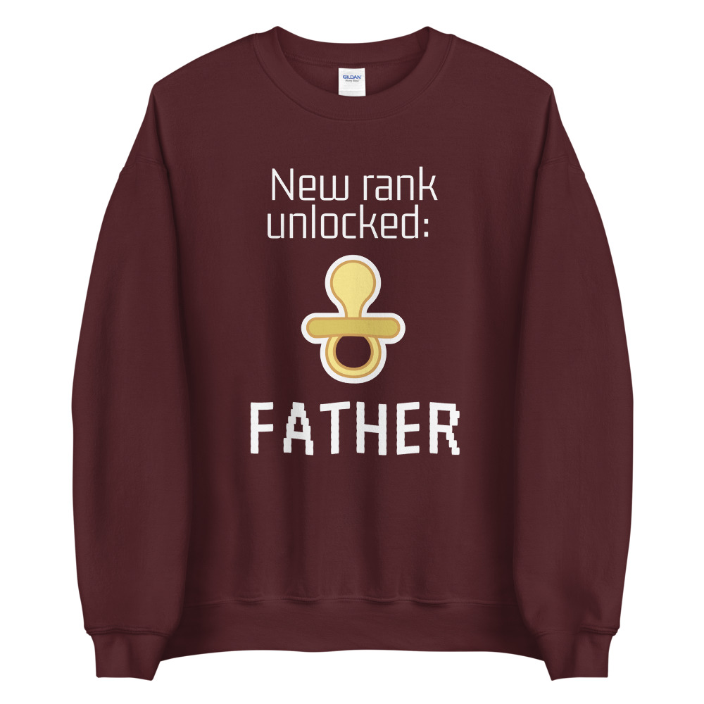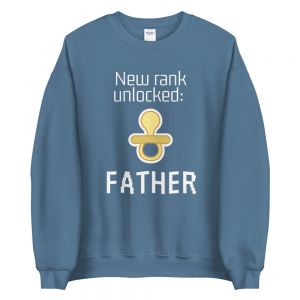סוודר גיימרים עם כיתוב New rank unlocked: father. הסוודר זמין במבחר צבעים והינו יוניסקס כלומר מתאים לגברים ונשים. הסוודר עמיד במיוחד ומתאים ללבישה יום-יומית.