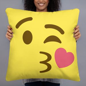 כרית אימוג׳י נשיקה בסטייל מודרני. כרית אימוגי נשיקה יכולה להיות המתנה הכי כיפית ומצחיקה לחברים או למשפחה. ניתן לבחור מבין 3 גדלים של כריות.